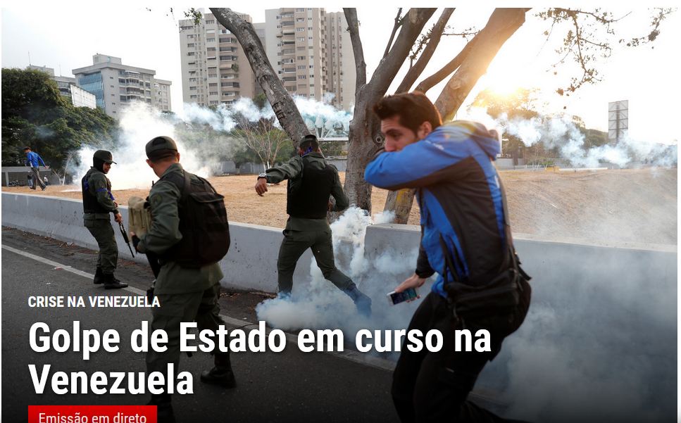 É uma vergonha. A TeleSur está a dar tudo em directo, de vários pontos que aqui disseram estar a ser 'tomados' pelo guaidó.